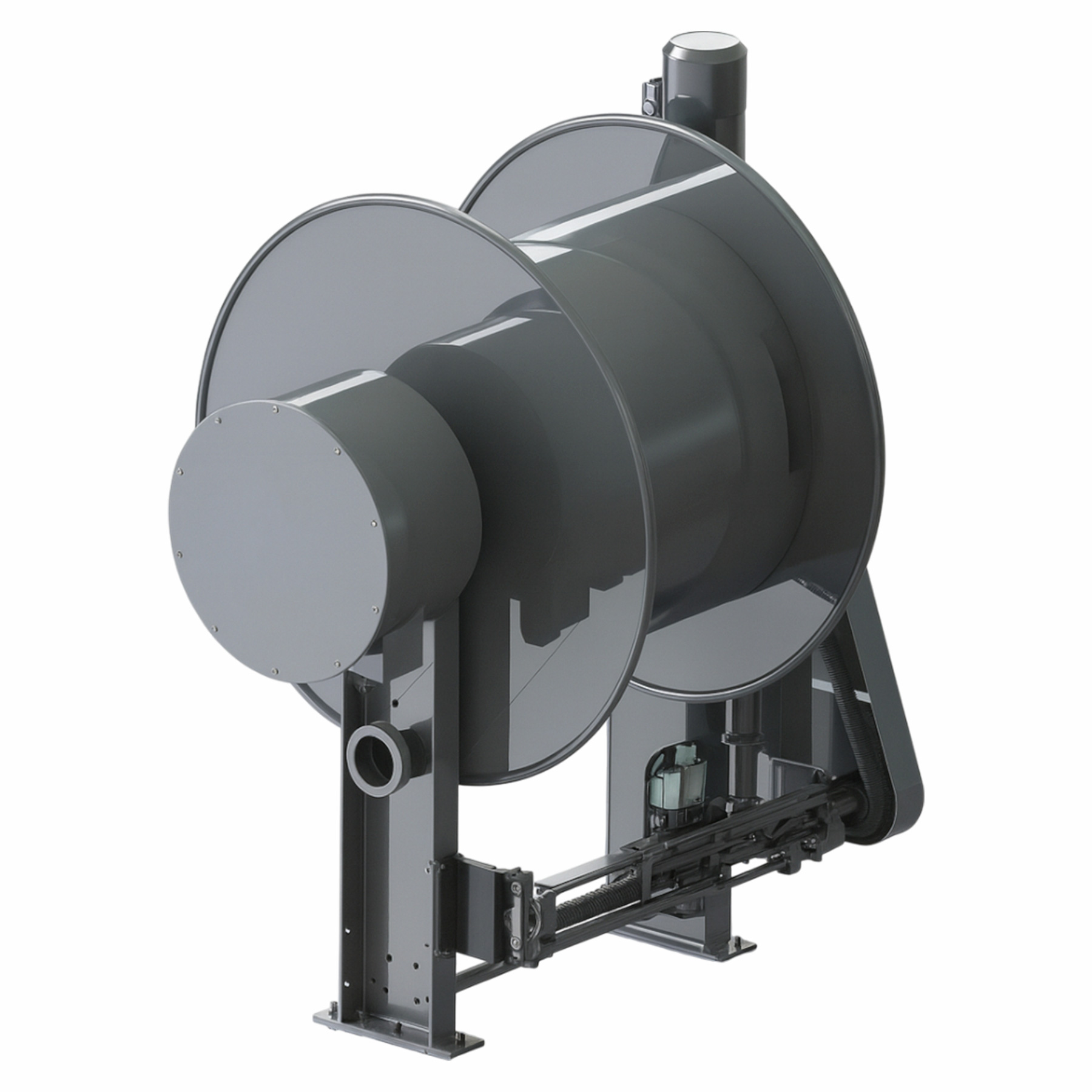 Motorlu kablo toplama tamburu, frenli asenkron motor + manyetik kavrama + redüktör kombinasyonu, kablo gerginliğini sabit torkla sınırlar. Makine hızlandığında veya yavaşladığında kabloyu kontrollü sarar / çözer, kabloyu ve mekanik aksamı aşırı zorlamadan korur.